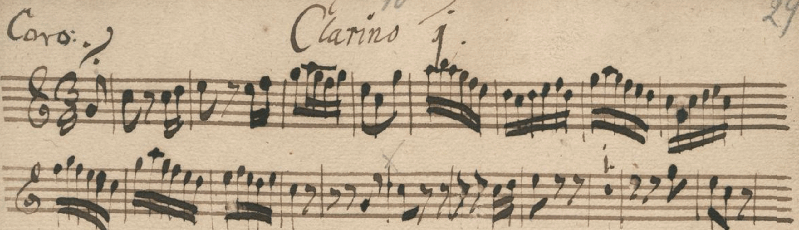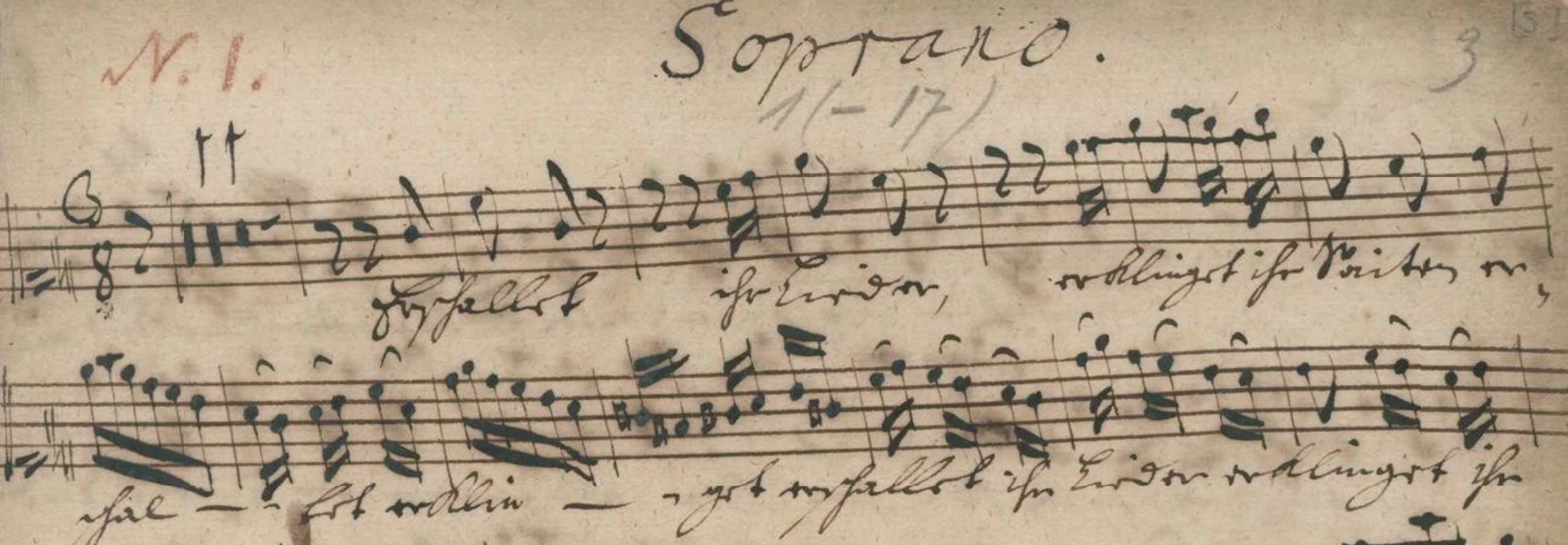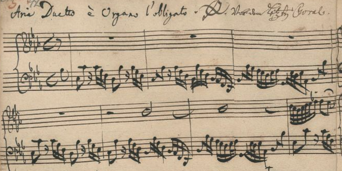 歌唱声部・第2ヴァイオリン・通奏低音・木管の声部が失われているため、