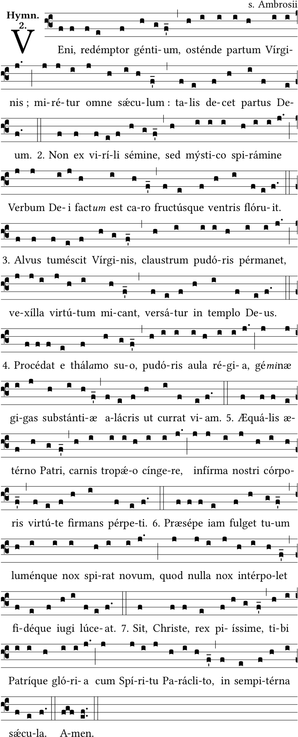 原典(参照)Veni redemptor gentium(伝アンブロシウス作)第1詩節。ウィキペディア+1