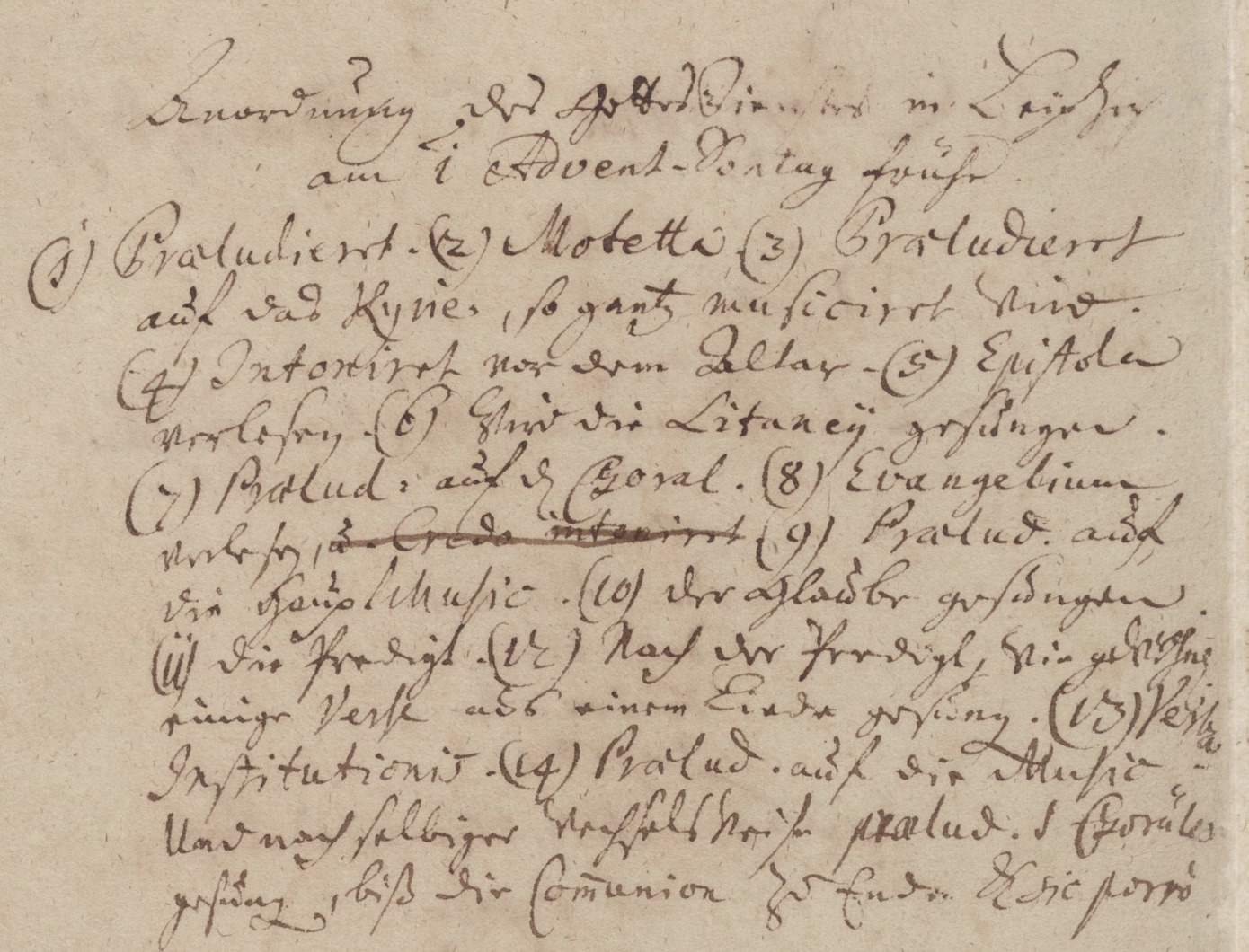 さらに表紙裏には、1723 年 11 月 28 日の再演に関連して、ライプツィヒの礼拝順序がメモされています。