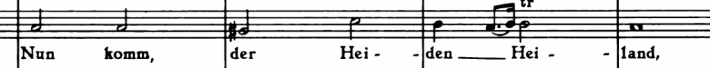 旋律:中世聖歌 Veni redemptor gentium に基づくコラール旋律(Zahn 1174)。