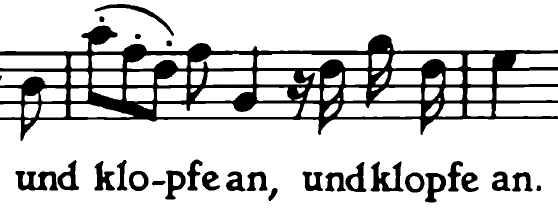 「anklopfen ノックする」はスタッカートとスラーがつけられていて、旋律線を保ちながらドアをノックするように歌うことを要求します。
