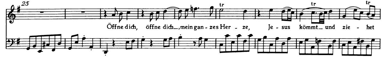 27小節からは、ソプラノと通奏低音が交互に「Öffne dich」の旋律を奏でて、気分は高揚していきます。