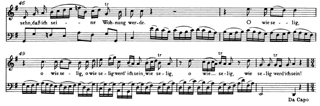 8分音符の緩やかなグラウンドバスの音形に支えられて進む音楽は、主への謙虚さを体現しています。