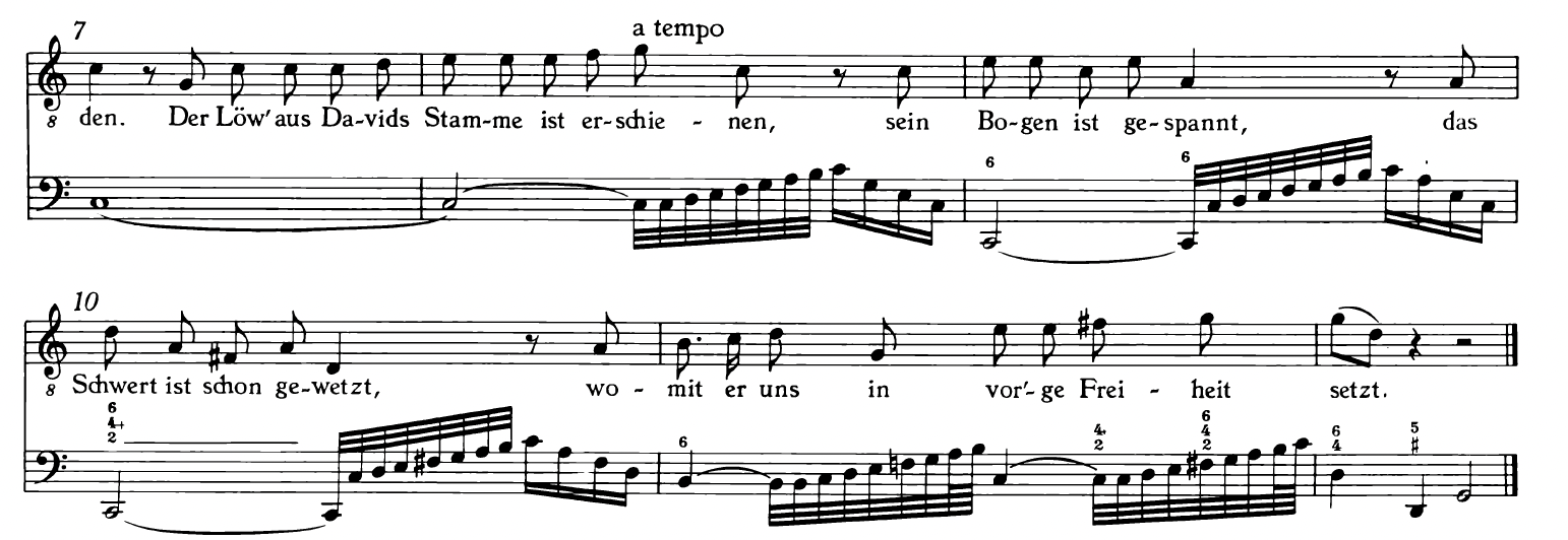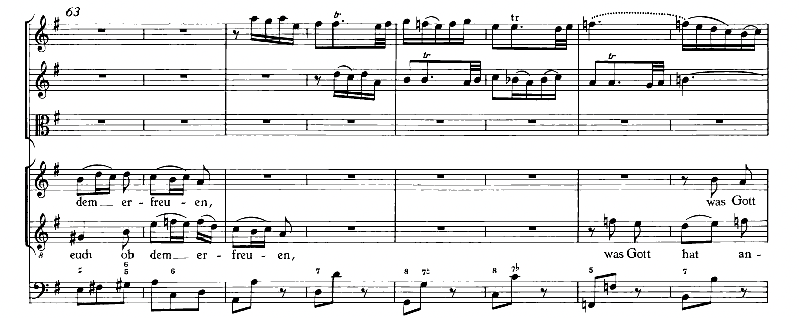 第二の二重唱は残る二人(アルトとテノール)が担当し、クリスチャンたちに喜びを鼓舞します。