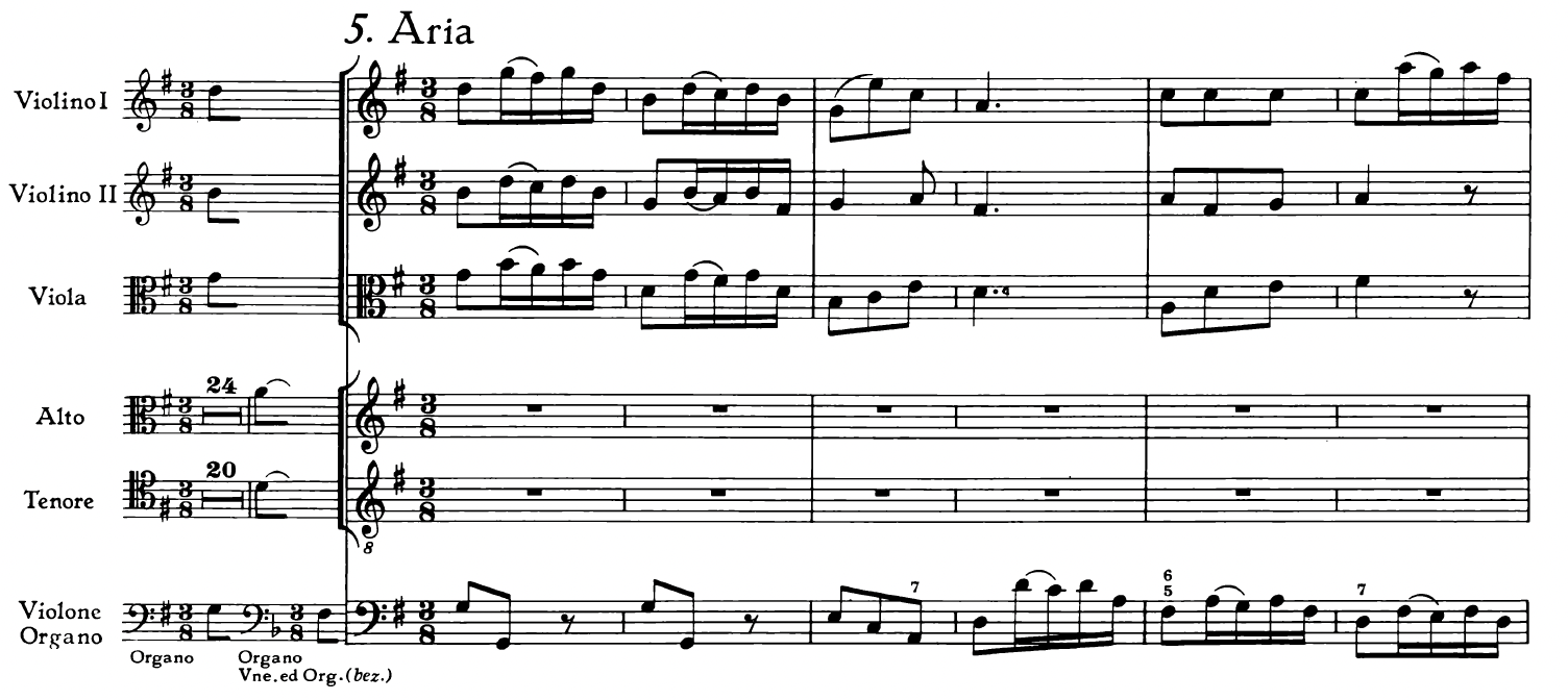 他のパート譜は全てC-Dur(ハ長調)で書かれているため、ヴァイマル期での上演の際には、オルガン(+ ヴィオローネ)がコーアトーン(A=465Hz)、その他の楽器はカンマートーン(A=415Hz)で演奏されたと推測されます。