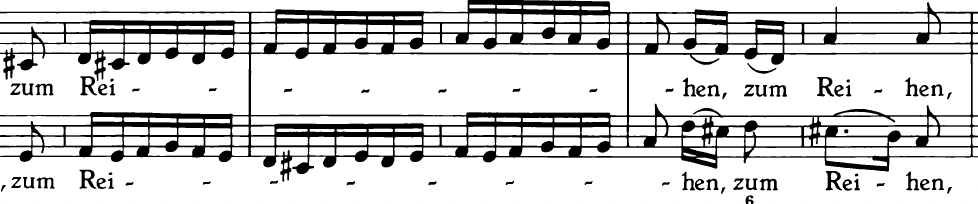 バッハは文字通り “Reihen = Reigen”(輪舞)を受けて、舞曲的に仕立てています。