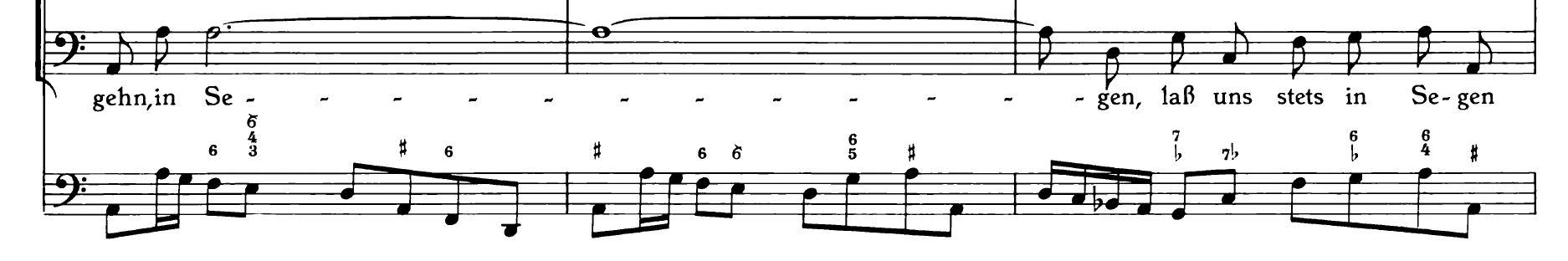 「Segen 祝福」の語は、バスによる2小節に及ぶロングトーンが存在感を示します。