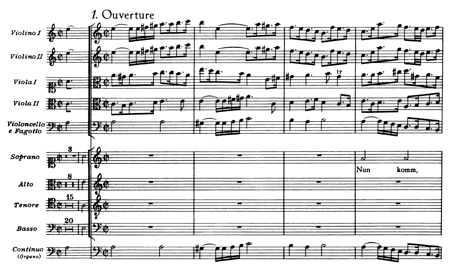 だが若き楽師長バッハの意欲は以上のような形式的な特徴にとどまらず、第1曲の音楽そのものに目に見える形であらわれている。